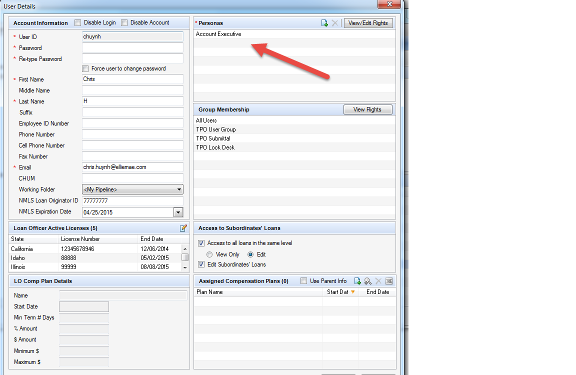 Step 3: Open up the new Persona “ Account Executive” and navigate to the last tab “ External Settings” , scroll down to the “TPO CONTACTS” section and check off the box for “ SALES REP” . Users under this Persona will be added to the “Add Sales Rep” list.